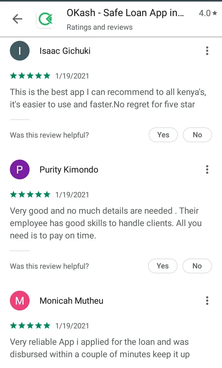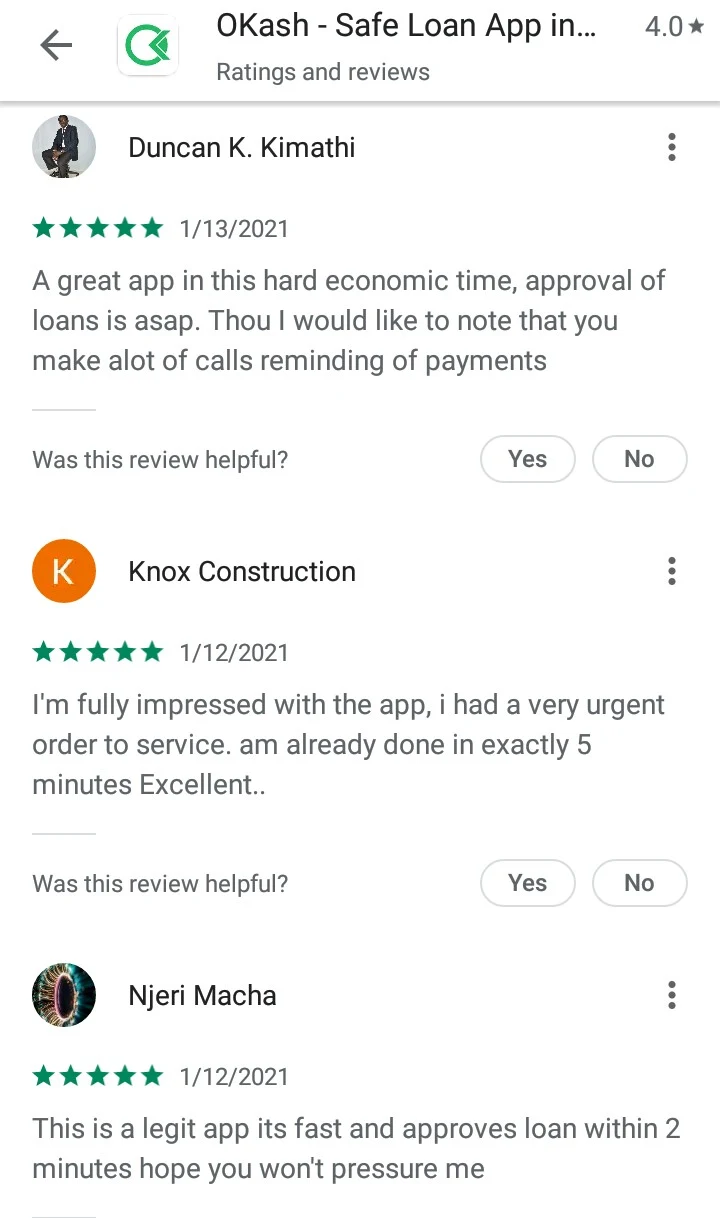 OKash also makes it easy for Kenyans to access credit anytime and anywhere, the reason why it is ranked among the most popular applications in Kenya with above 4-star average user rating in Google Play.